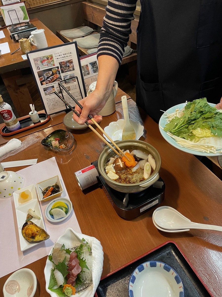 寒さが厳しくなった1月下旬、季節ごと時期の魚料理を楽しんでいる東京のIさんがどぶ汁仕立てあんこう鍋料理を宿泊して楽しんだ。これまでお客さんがどぶ汁仕立てを召し上がる成り行きをカメラに収めてことが無かった。Iさんにことの次第を伝え、海辺里のどぶ汁仕立ての一部をカメラの収めた報告です。